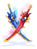 A costume sword modeled after the twin swords of the demon Naght Sieger. Because it is decorative, it cannot actually cut paper. _______________________ Type: Costume Position: Garment Weight: 0 _______________________ Requirement: None |